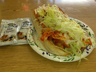 In the spirit of “Small Business Saturday”, we stopped at this little place in Westminster after checking out a venue in Central MA. This was definitely a small-town local joint, as the one employee there (maybe the owner?) seemed to recognize everyone who walked in (except for us, of course). They had a pretty standard pizza and sub shop menu (or grinders as they’re called here). I ordered up a small buffalo chicken sub/grinder with lettuce. And FYI, Mat enjoyed a nice steak bomb, which I also believe is a local phenomenon.
