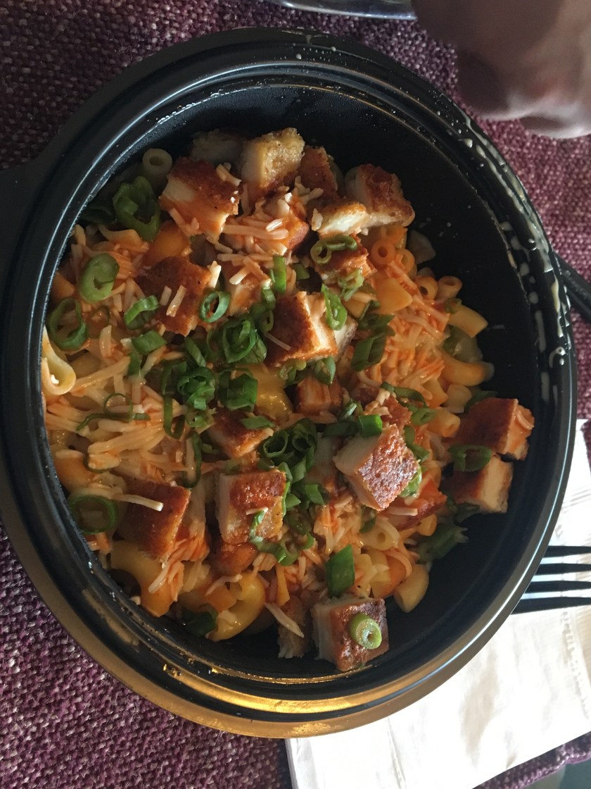 The menu says: “Wisconsin Mac & Cheese with parmesan chicken, Frank’s RedHot® Buffalo Wings Sauce, parmesan cheese and green onions”. What’s not to love? The pasta (as you might hope from a place called Noodles) was perfectly cooked. The cheese was deep, rich, and super sharp. The chicken was breaded, but not too heavy. Frank’s Red Hot was tastefully drizzled onto the dish, and I probably don’t have to tell you again that green onions are a surefire way to my heart!